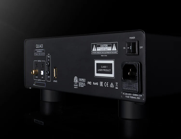 Internally, the transport mechanism is shielded against vibration and electrical interference. From the disc tray to the digital outputs, every element has been engineered for durability, quiet operation, and uncompromised fidelity with meticulous attention to detail, and is therefore ‘QUAD by the book’.
